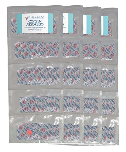S-Type 100cc Oxygen Absorbers in separate vacuum-packed compartments Each packet absorbs 100 cc's of oxygen, approximately the amount of oxygen in a quart-sized container filled with an item such as pinto beans. A Long-Term Food Storage Guide is included to help you determine the amount of absorption required by food type as well as directions for proper use and food storage tips.These S-Type oxygen absorbing packets are the most versatile, suitable for both moist and dry food storage. Whether you are storing food long-term, maintaining freshness short-term, or protecting pharmaceuticals or art, Pack Fresh Oxygen Absorbers provide the most effective protection from the damaging effects of oxygen as well as oxygen-dependent bacteria, mold, and bugs.