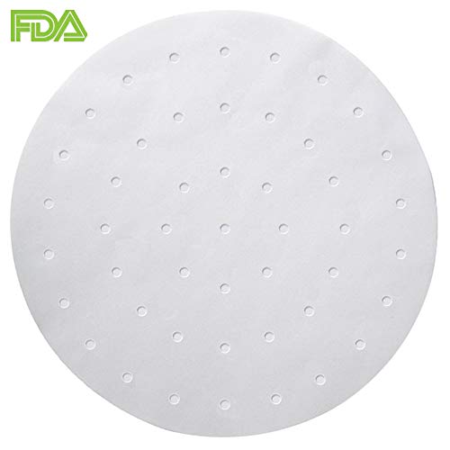Besego Part#: SYNCHKG122015 - 100pcs Air Fryer Liners, BESEGO 9inch Bamboo Steamer Liners, Premium Perforated Parchment Steaming Papers, Non-stick Steamer Mat, Perfect for 5.3 & 5.8 QT Air Fryers/Baking/Cooking