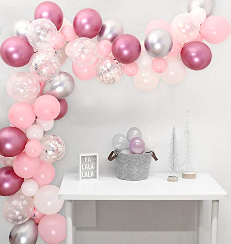 Kreatwow Part#: MX-F-PA-1429 - 106 Pack Snowflake Balloon Garland Winter Wonderland Party Decorations Pink and Silver for Baby Shower, 1st Birthday or Baby Its Cold Outside Decorations