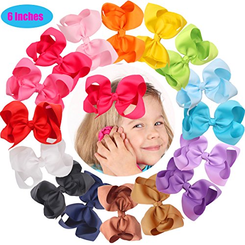 Cellot Part#: CELLOT-XY-49 508948563477 - 16 Pcs 6 Inch Hair Bows Clips Baby Girls Toddlers Big Bow Alligator Hair Clips Solid Ribbon Head Wear Accessory