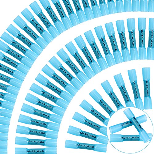 - QUANTITY: 180pcs blue 16-14 AWG heat shrink butt connector.
