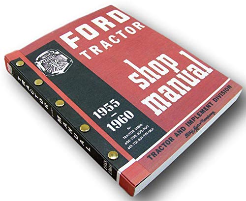 - "1955-1960 Ford Tractor Shop Manual" This is a quality reproduction of the factory manual. Inside you will diagnostic aids for engine problems with detailed troubleshooting solutions, extensive instructions for the removal and installation of your tractor's parts, and many cutaways and photographs. You will learn how to handle LP Gas, perform engine tune-ups, bleed and flush the fuel system, care for the cooling system, overhaul the transmission, replace the center housing on the rear axle, overhaul the brakes, and work on the hydraulic system. With clear pictures, exploded view illustrations, wiring diagrams, schematics, specifications, and a list of special tools, you will have everything you need to get the job done right. Included are a maintenance schedule and lubrication guide, as well as lists of special tools to take the guess work out of regular service. Covers all configurations of 600, 700, 800, 900, 601, 701, 801, 901, 1801 series tractors with three-point hitch, gasoline, diesel, or LP-gas engines; select-o-speed, four & five speed transmissions; live, ground-drive (dead), no or both kinds of power take off. 422 pages, NEW condition. Buy now on the only manual prepared by the Tractor and Implement division of Ford. 1955, 1956, 1957, 1958, 1959, 1960 Covers the following, including models followed by the letters D or L, or numbers -1, -4, or -21, or any combination:600 series: 620, 630, 640, 650, 660. 601 series: 611, 621, 631, 641, 651, 661, 671, 681. 700 series: 740. 701 series: 741, 771. 800 series: 820, 850, 860. 801 series: 811, 841, 851, 861, 871, 881. 900 series: 950, 960.901 series: 941, 951, 961, 971, and 981& 1801 series.