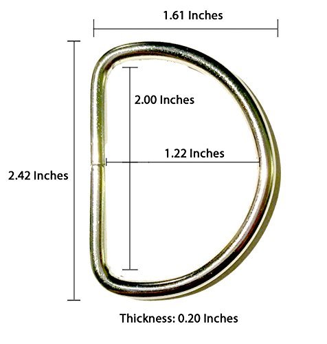 Heavy duty nickle plated welded D-rings are great hardware for us in belts, harness, collars, and other items that requires the use of webbing, ribbons, and other strap materials. The size of the D-ring corresponds with the size of the webbing and straps it is used with. This D-ring is use with 2 Inch webbings.----- As with all d-ring. The dimension that is called out "1 inch d-ring," "2-inch d-rings" the dimension always refers to the inner dimension of the d-rings where the webbings would go. Before you purchase, measure the width of the webbing or strap you are using and get the appropriate sizes d-ring.-----Features: