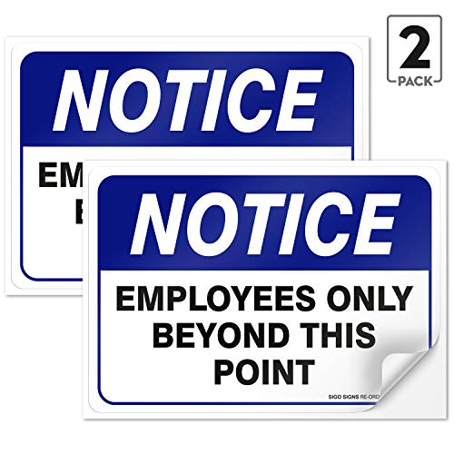 (2 Pack) Employees Only Beyond This Point Sticker Sign, 10x7 Inches 4 Mil Vinyl Self Adhesive Durable Decal Stickers Long Lasting Weatherproof and UV Protected, Made in USA by SIGO SIGNSFeatures: