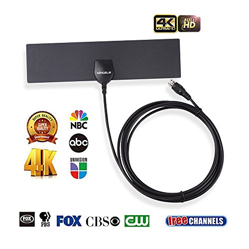 [2019 Latest] KINGELE HDTV Antenna,Indoor Digital TV Antenna (4K Ready/ATSC 3.0 Ready/VHF/UHF/35 Miles Range) and 10ft Coaxial Cable,Ultra Thin TV Antenna,Free Local HDTV Channels,10ft Coax Cable