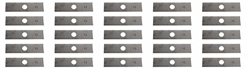 25 pack of USA Mower Blades® replacement edger blades for Echo®, Green Machine®, Husqvarna®, Maruyama®, Red Max®, Ryobi®, Shindaiwa®, and Stihl® edgers. These blades have not been sharpened, heat treated, or painted.