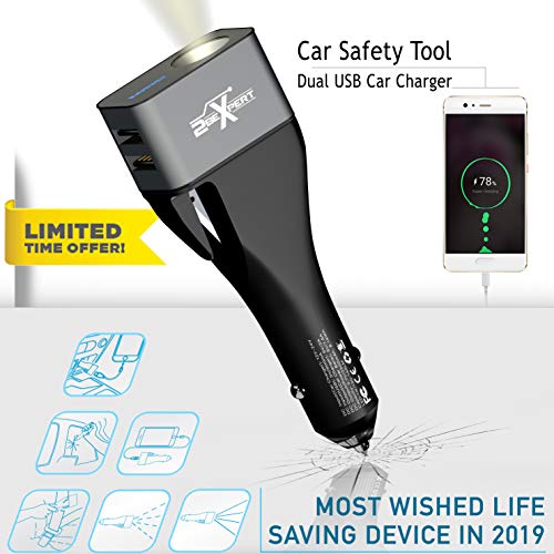 2Bexpert Part#: parent2besafe 754097312002 - 2BEsafe Car Crash Safe Emergency Escape Safety Tool w/Dual USB Charger, Window Breaker Hammer and Seatbelt Cutter & 2200mAh Power Bank (Black)