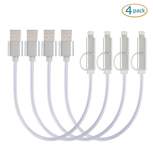 2in1 Lightning and Micro USB Cable Short [4 Pack 1ft] Nylon Braided High Speed Sync and Charging Lightning Cable Cord for iPhone 7 Plus/6s plus/5, iPad /iPod, Android Samsung, HTC and More