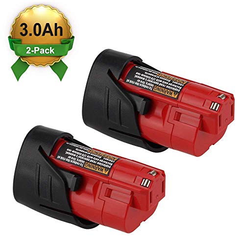Munikind Part#: for M12 745499723718 - 2Packs 12V 3000mAh Lithium-ion Replacement for Milwaukee M12 Battery 48-11-2402 48-11-2440 48-11-2411 48-11-2401 XC Cordless Drill Batteries