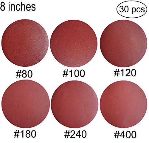 30 PCS 8-Inch NO-Hole PSA Aluminum Oxide Sanding Disc, Self Stick(5 Each of 80 100 120 180 240 400)