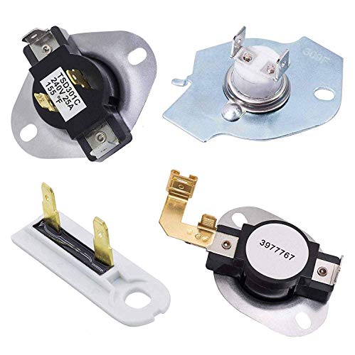 - ✅ [4 PIECES INCLUDED] Package includes 1 PC 3977767 dryer thermostat, 1 PC 3387134 dryer thermostat, 1 PC 3392519 dryer thermal fuse, 1 PC 3977393 thermal fuse.