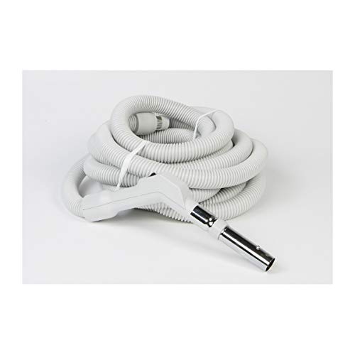 Crushproof, lightweight, 360-degree swivel, 35-foot central vacuum hose with on/off switch for the suction. A great central vacuum cleaner replacement hose for everyone who uses an air driven non-electric power brush such as all models of TurboCat and other small air-driven brushes. Compatible with vacuum wall valves with two small low voltage metal contacts inside the 1.5 inch (or so) diameter hole. Use with Chrome Extension Tube Wands. ATTN VACUFLO: The hose end doesn't have two metal valve pinsFeatures: