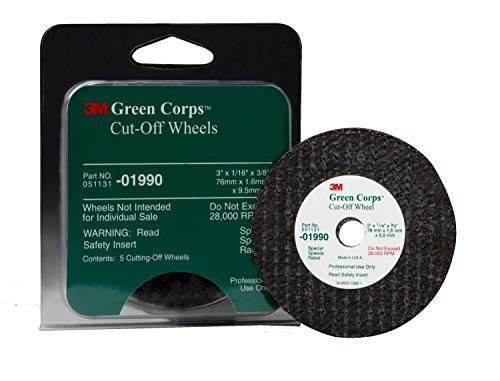 3M Part#: 01990 051131019904 - 3M 01990 Green Corps 3" x 1/16" x 3/8" Cut-Off Wheel (5 Wheels Included)