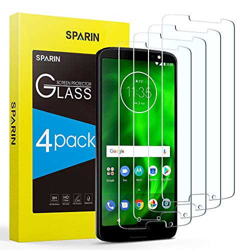 Sparin Part#: SP-MOTO G6-SP - [4 Pack] Moto G6 Screen Protector, SPARIN Tempered Glass Screen Protector for Moto G6, Covers Viewable Display Only with Anti-Scratch/Response Quickly/Easy Installation/Bubble Free, 5.7 inch