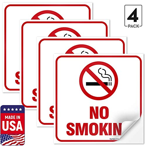 (4 Pack) No Smoking Sign Stickers, 5.5 x 5.5 Inches, 4 Mil Vinyl Self Adhesive Durable Decal Stickers, Long Lasting, Weatherproof and UV Protected, Made in USA by SIGO SIGNS