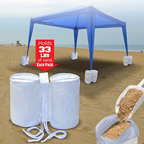 Keep your canopy where you want it with this universal sand bag kit! Don't let your tent get carried away by the wind or jostled during backyard activities. These bags are so easy to use you'll wonder why you didn't get them sooner. Sold in sets of 4 PCS to easily accommodate any size tent.Features: