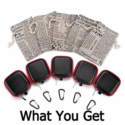 - Each of the five small earbuds case comes with a carabiner so the earbud case can be attached to virtually anything. Also, each of small case comes with a electronics pouch so you can give it to friends as a gift.