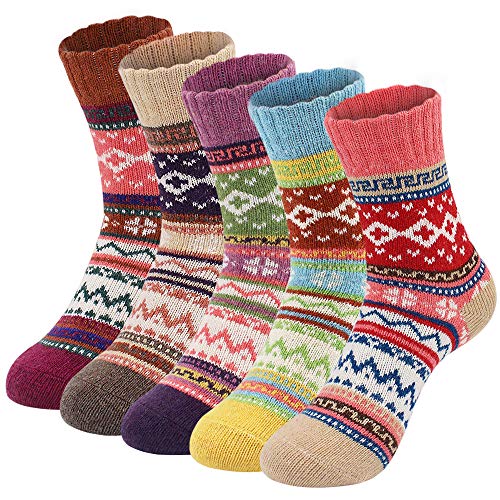 5 Pairs Socks Womens Vintage Winter Soft Wool Warm Cozy Crew Socks