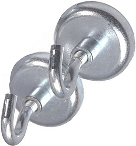 These hook magnets each hold up to 50 lbs. The 50 pound capacity is based on horizontal application and is reduced by 2/3 if used vertically. The hook size is 1 3/8" diameter x 1 3/4" high. The eye bolt is removable and may be replaced with other threeded parts. Material:Zinc housed Neodymium. Magnet Grade: N48. Coating: Zinc Plated Steel. Magnetization:Through thickness. Pull Force: 50.00 pounds. SKU# HK50 Neodymium Apex Magnet's neodymium hook magnets make holiday decorating a breeze. Use these magnetic hooks to hang holiday wreaths, lights, garland, and more! Each hook can hold up to 50 pounds, making decking the halls easier than ever! These Magnets are meant for use by adults only. Keep away from children, pacemakers and other implants. Handle with care. Our magnets are made for the adult inventor, manufacturer, researcher, DIYer, problem solver, etc.Features: