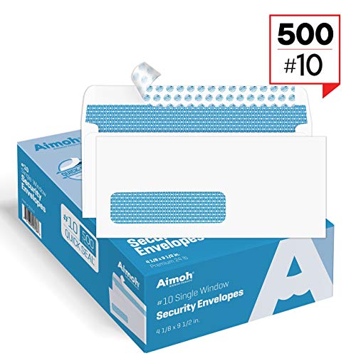 #10 SINGLE WINDOW SECURITY ENVELOPES: GREAT VALUE 500 ENVELOPE SUPPLY FOR EVERYDAY USE! Are you tired of cheap paper envelopes that easily tear when mailing thick documents? Would you like professional quality, security tinted, quick seal envelopes ideal for secure mailing and home office use? If so, Aimoh's #10 Single Window Security Tint Envelopes are the perfect choice! Provided in a great value, 500 envelope pack, #10 Security Tint Envelopes provide a long lasting, great value supply perfect for small businesses and home offices, with a tough, premium construction, these envelopes are perfect for mailing invoices, statements and other standard business and legal documents, each envelope is designed with an extra large, easy read 4-1/2 X 1-1/8 poly window, positioned 7/8" from the left and 1/2" from the bottom of the envelope, perfect for displaying mailing addresses and eliminating constant hand addressing and printing for cheaper, quicker bulk mailing, #10 Security Tint Envelopes are a great value, everyday choice with a number of key benefits: - Large envelopes measuring 4-1/8 x 9-1/2 inches. - Single left window, positioned 7/8" from the left and 1/2" from the bottom. - Professional security tint pattern protects sensitive information. - Super strong quick seal adhesive strip creates a tough seal. - Convenient 500 envelope supply! If you're looking for the perfect security envelopes with professional security tint, and strong, quick seal strips, in a great value 500 envelope supply, perfect for everyday business use, #10 Single Window Security Tint Envelopes are the perfect choice!Features: