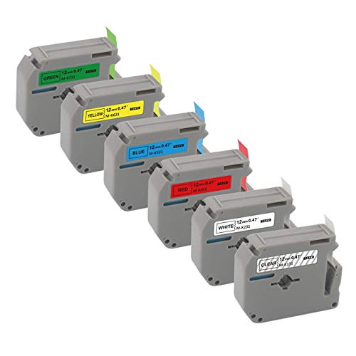 - Package Included - 6 Colors in one set. Color: black on clear (MK131), black on white (MK231), black on red (MK431), black on blue (MK531), black on yellow (MK631), black on green (MK731). Size: 1/2 inch x 26.2 feet ( 12mm x 8m)
