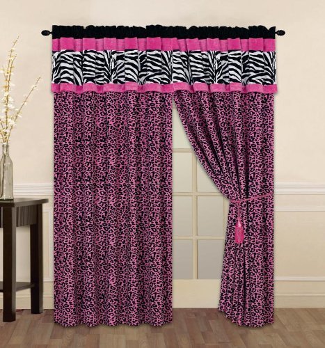 Grand Linen Modern Pink Black Leopard Zebra Micro Fur Curtain Set