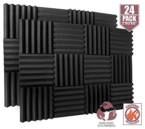 24 Pack Acoustic Foam Panels 2" X 12" X 12" Fireproof - SGS Certified - Soundproofing Studio Foam Wedge Tiles - Top Quality - Ideal for Home & Studio Sound Insulation High Density 1,57 pound/CBF