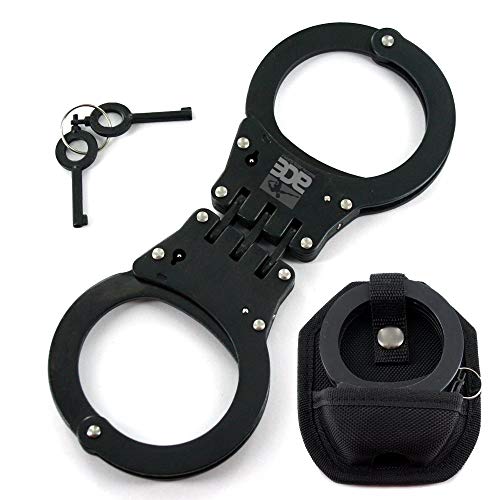 Ace Martial Arts Supply Hinged Heavy Duty Handcuffs and Keys, Black