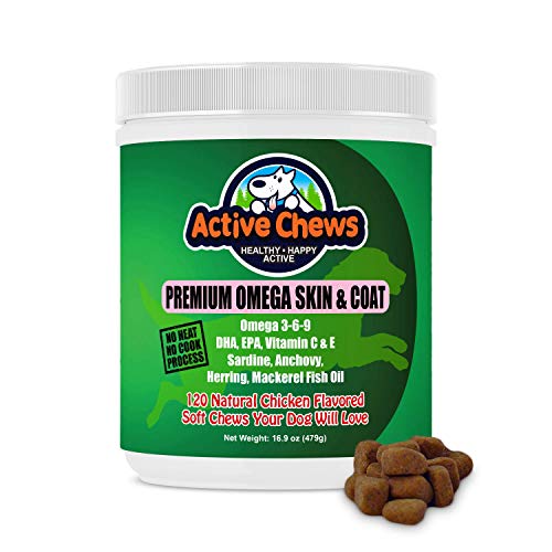 - EFFECTIVE SKIN, BRAIN, HEART HEALTH FOR DOGS: Our fish oil for dogs is much more than just Salmon Oil for Dogs. It's a unique combination of 4 smaller fish that creates a pure, potent, dog fish oil blend. Active Chews Omega Chews treats skin and coat conditions, itchy skin, flaking, and hot spots while developing a stronger immune system, healthier brain and heart. A daily dose of Active Chews will keep your dog happier at all stages of life.