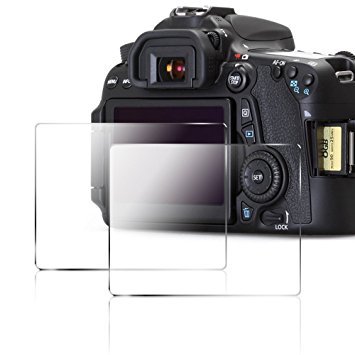 AFUNTA Camera Screen Protector Compatible Canon 70D 80D, 2 Pack Anti-Scratch Tempered Glass DSLR Camera