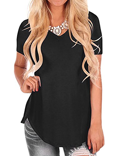 Part#: - Aifer Women V Neck Long/Short Sleeve T Shirt Curved Hem Casual Basic Tops