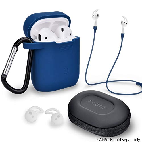 Airpods Accessories Set, Filoto Airpods Waterproof Silicone Case Cover with Keychain/Strap/Earhooks/Accessories Storage Travel Box for Apple Airpod (Navy Blue)