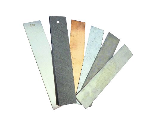Ajax Scientific 6 Piece electrode set. Set includes Cu, Al, Zn, Fe, Pb and graphite. Measures 127-millimeters length by 25-millimeters width.Features: