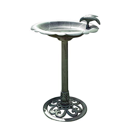 Alpine Corporation Plastic Birdbath and Feeder - Outdoor Decor for Garden, Patio, Deck, Porch - Green