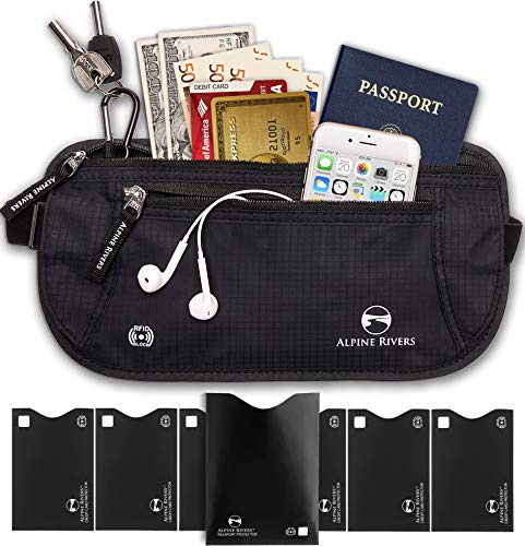 Alpine Rivers Money Belt - RFID Blocking Hidden Travel Wallet + 7 Bonus Sleeves