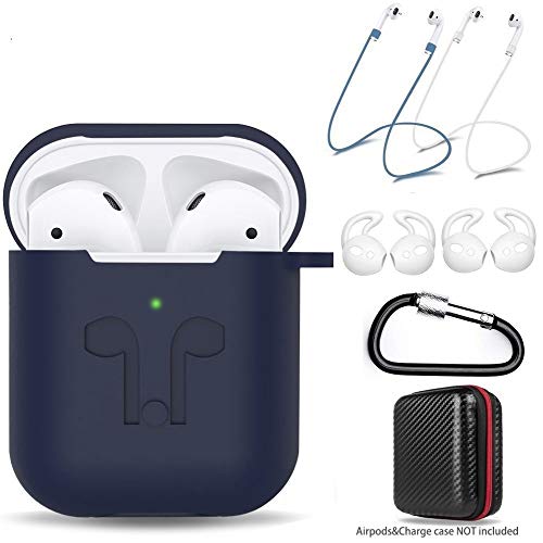 Amasing Part#: AirPods Case Protective Silicone Blue - amasing AirPods Case 7 in 1 for Airpods 1&2 Accessories Kits Protective Silicone Cover for Airpod Gen1 2 (Front Led Visible) Included 2 Ear Hook /2 Staps/1 Clips Tips Grips/1 Zipper Box (Blue)