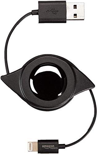 AmazonBasics Apple Certified Retractable Lightning to USB Cable, 2 Feet, 0.6 Meters, Black