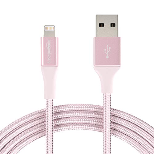 AmazonBasics Double Braided Nylon Lightning to USB Cable, Advanced Collection, MFi Certified iPhone Charger, Rose Gold, 10 Foot