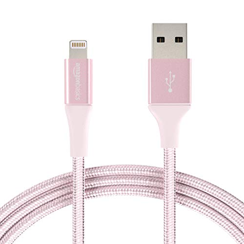 AmazonBasics Double Braided Nylon Lightning to USB Cable, Advanced Collection, MFi Certified iPhone Charger, Rose Gold, 6 Foot