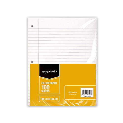 AmazonBasics Wide Ruled Loose Leaf Filler Paper, 100 Sheet, 10.5 x 8 Inch, 6-Pack