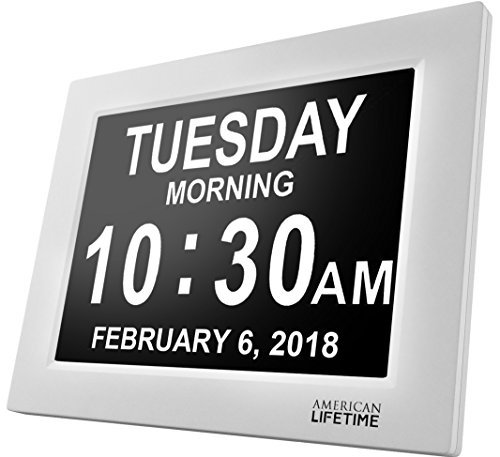 American Lifetime Part#: DC-01 728044490006 - American Lifetime [Newest Version] Day Clock - Extra Large Impaired Vision Digital Clock with Battery Backup & 5 Alarm Options - White