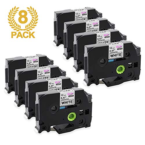 Anycolor Part#: AC-231-8 - Anycolor Compatible Label Tape Replacement for Brother P-Touch TZe-231 Standard Laminated Label Tape Black on White 12mm 0.47 Inch, work for PT-D210 PT-H100 PT-D200 Label Makers, 8-Pack