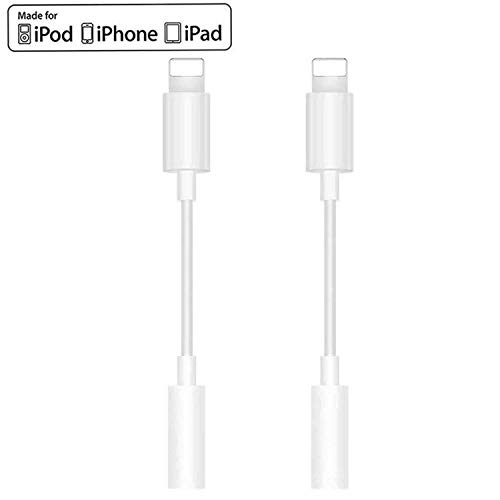 (Apple MFi Certified) Lightning to 3.5mm Headphone Adapter, 2 Pack Headphone Adapter Compatible for iPhone Xs/XR/X 10 8 7, 3.5 mm Connector Stereo, Support Music Control & Calling Function & iOS 12