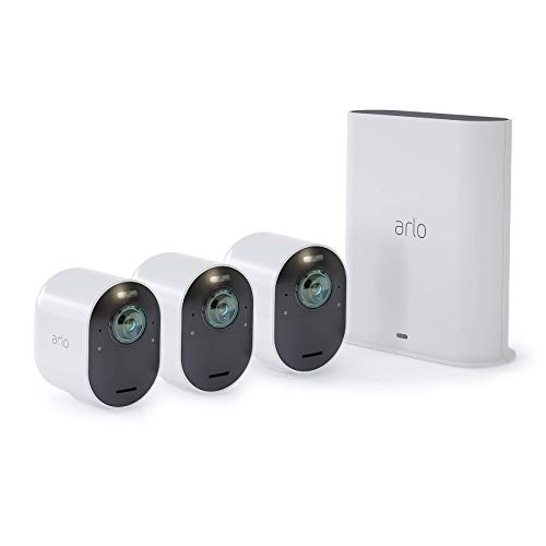 Arlo Ultra Home Security Camera System| 4K UHD Wire-Free with HDR, Color Night Vision, 180° View, 2-Way Audio, Spotlight, Siren | Works with Alexa and HomeKit | 3 Camera Kit (VMS5340)