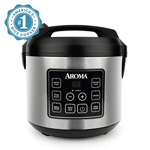 Aroma Housewares 20 Cup Cooked (10 cup uncooked) Digital Rice Cooker, Slow Cooker, Food Steamer, SS Exterior (ARC-150SB)
