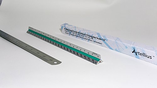 Artellius B071VVKGQ8 12" Triangular Architect Scale Ruler (Professional Grade Metal) Color Coded Architectural Scale (Imperial Measurements) Free 12" Metal Standard Ruler