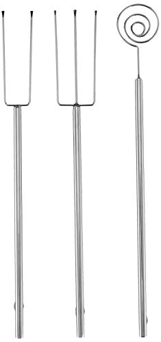 The Ateco Dipping Tool 3-Piece Set is a perfect addition to any baker's toolkit for handmade chocolate and candy making. Each tool is designed to hold and secure chocolates, caramels, cake balls, candies, fruits, nuts and more into chocolate or candy coating. The dipping set includes a 2-prong fork, 3-prong fork, and a spiral swirl dipper ensuring you have the right tool for the job. Each dipping tool has an 8-inch handle making it easy to keep hands clean while dipping and decorating treats. Made of durable rust resistant stainless steel, hand washing is recommended for this set. Four generations of the August Thompson family have provided quality baking and decorating tools to professional pastry chefs and discerning home bakers for over 100 years.Features: