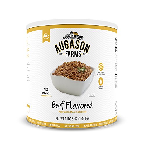 The Augason Farms Beef Flavored Vegetarian Meat Substitute 2 lbs 5 oz No. 10 Can is textured vegetable protein made from defatted soy flour and is ideal for vegetarian diets. Since it features the savory taste of real beef, it can be readily used in place of meat in tacos or stroganoff, for example. After rehydrating, it should be used at once or refrigerated. This highly nutritious vegetarian meat substitute replaces ground beef, and it’s a good source of protein and fiber. Use it in everyday meal preparation, as well as a desirable part of a food storage program. This product consists of 40 Servings and 3,600 Calories, with a shelf-life of up to 10 years. It's perfect for Food Storage, Emergencies, Survival, Camping, and Everyday Use! Make the wise decision and let Augason Farms give you a peace of mind that's as indispensable as it is delicious. Family owned and operated since 1972, Augason Farms believes that great taste is a tradition worth preserving. They'll provide you with delicious peace of mind with their food essentials. Please discard oxygen absorber after opening. Best when stored in a cool dry place at temperatures between 55 Degree and 70 Degree F (ideal humidity 15%).Features:
