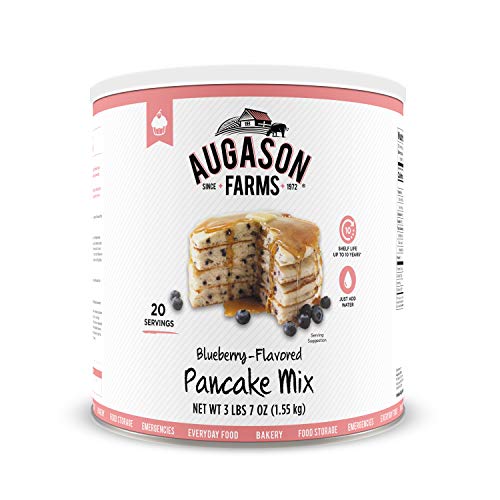 The Augason Farms Blueberry Pancake Mix 3 lbs 7 oz No. 10 Can is made from high quality flours that are blended to perfection and wholesome, flavorful blueberry bits. All you need to do is add water to make delectable, healthy and mouthwatering pancakes, full of natural goodness and irresistible flavor. Not only can you make tender, light, fluffy, golden-brown blueberry pancakes—nearly everyone’s favorite—consider also using the Blueberry Pancake Mix to easily and quickly make waffles, biscuits and muffins. This product consists of 19 Servings and 5,510 Calories, with a shelf-life of up to 10 years. It's perfect for Food Storage, Emergencies, Survival, Camping, and Everyday Use! Make the wise decision and let Augason Farms give you a peace of mind that's as indispensable as it is delicious. Family owned and operated since 1972, Augason Farms believes that great taste is a tradition worth preserving. They'll provide you with delicious peace of mind with their food essentials. Please discard oxygen absorber after opening. Best when stored in a cool dry place at temperatures between 55 Degree and 70 Degree F (ideal humidity 15%).Features: