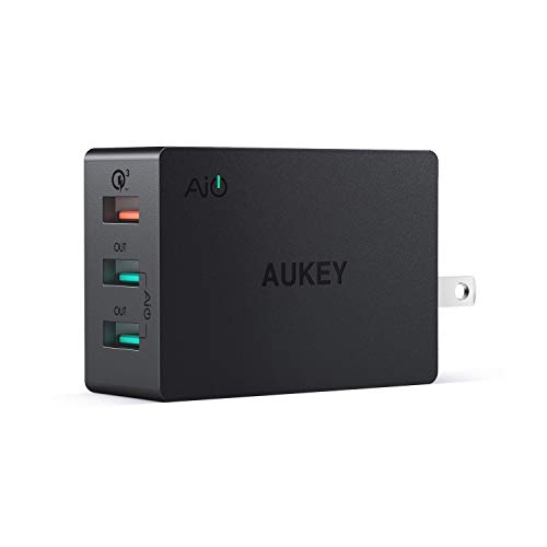 AUKEY Quick Charge 3.0 3-Port USB Wall Charger 43.5W with Foldable Plug, Compatible with Samsung Galaxy S8 / S8+ / Note8, LG G6 / V30, iPhone 11/11 Pro/Max and More